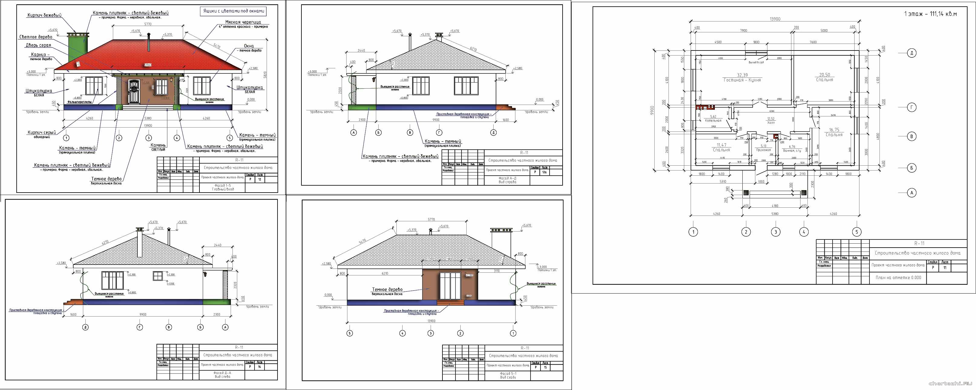 Р / Готовый проект дома 111 кв.м. Артикул R-11. Удобный, экономный дом на одну семью, рассчитаны все материалы вид и количество. / Состав: комплект чертежей + калькуляция.