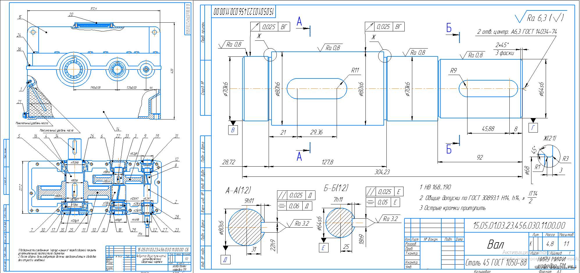 НИЯУ МИФИ / Кафедра технологии машиностроения / Специальность «Проектирование технологических машин и комплексов» / по дисциплине "Детали машин и основы конструирования" / Состав: 2 листа чертежи (редуктор, вал) + спецификация + ПЗ (26 страниц).