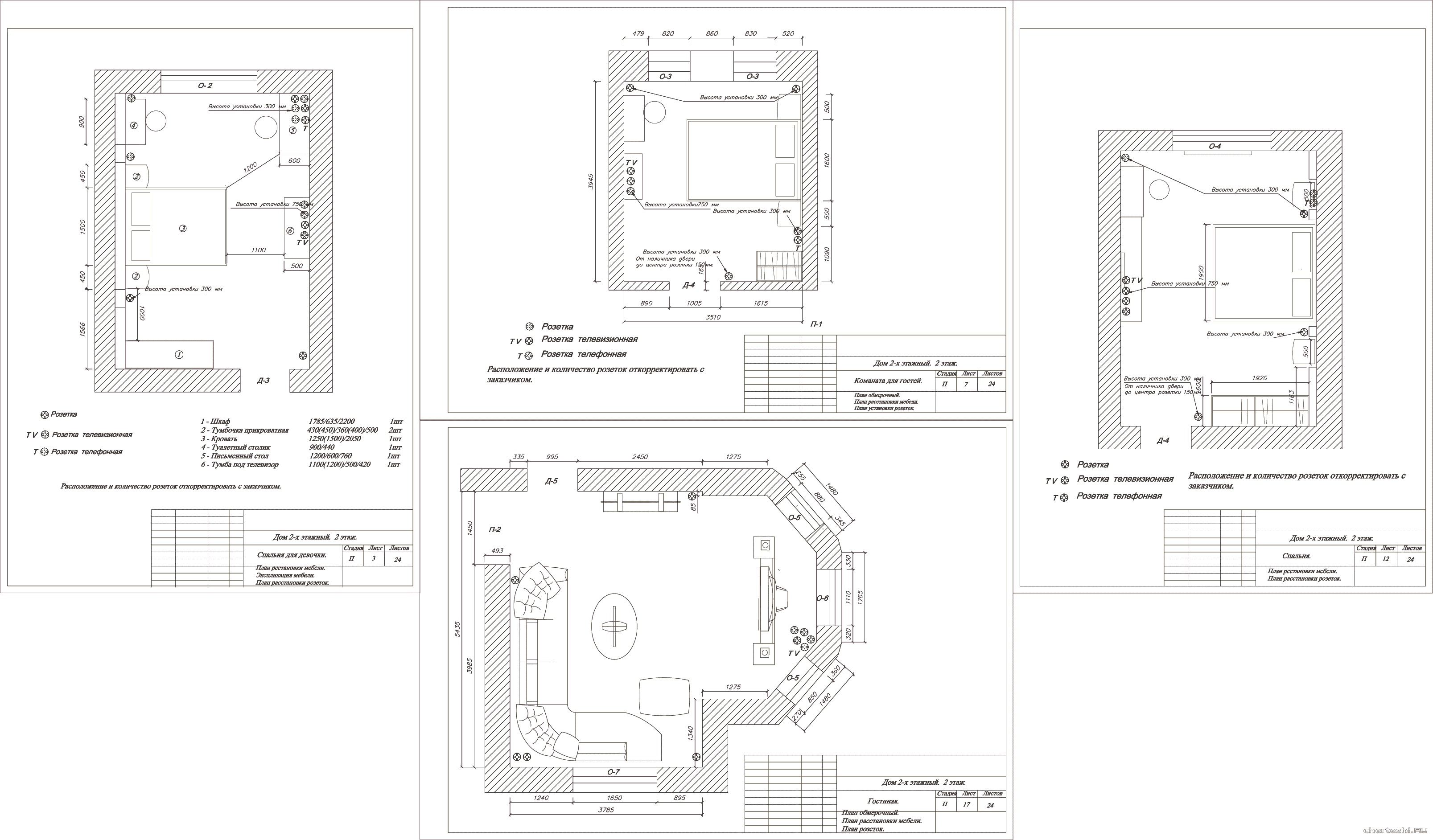 Проектные чертежи частного жилого дома 2 этаж. В проекте представлены холл 2 этажа, гостиная, и 3 спальни / Состав: комплект чертежей (24 листа)