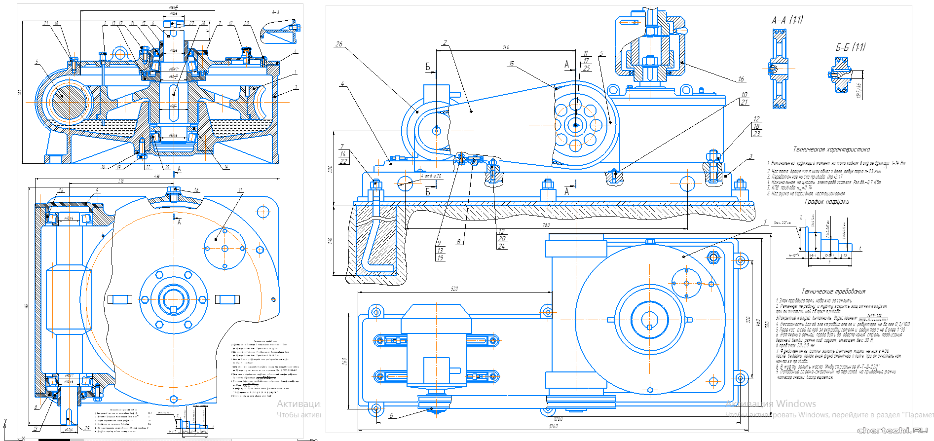 Коротко о файле:БГТУ / Заданный к проектированию привод состоит из одноступенчатого червячного редуктора, соединенного с валом электродвигателя ременной передачей, а с приводным валом – муфтой. Проектируемый привод предполагается эксплуатировать в закрытом, отапливаемом, вентилируемом производственном помещении, снабжённым подводом силовой электрической энергии (380 В). Кинематическую схему изменяем путем перемещения червяка с правой стороны редуктора в левую, с целью снижения нагрузок на быстроходный вал. / Состав: 5 листов чертежи (привод, редуктор, корпус, колесо, вал тихоходный) + спецификации + ПЗ.