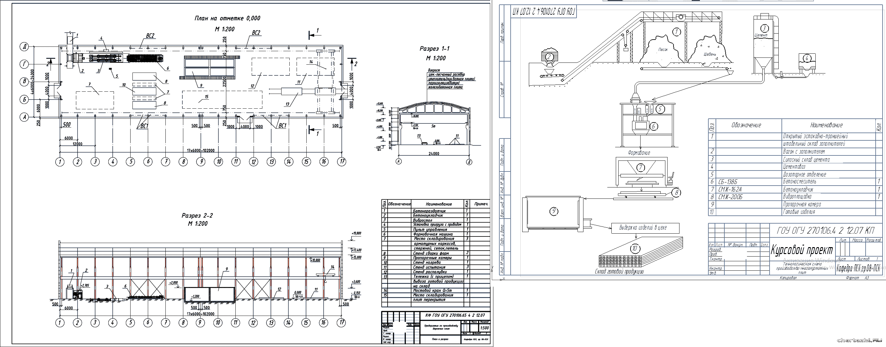 Коротко о файле:КФ ОГУ / Кафедра ПСК / В данном проекте разработан цех по производству многопустотных плит покрытий. Производительность – 20000 м3 в год. Произведен расчет состава смеси, подобрана технологическая схема, технологическое оборудование, проанализированы условия и основные мероприятия по охране труда при производстве железобетонных изделий. / Состав: 2 листа чертежи + ПЗ (46 страниц).
