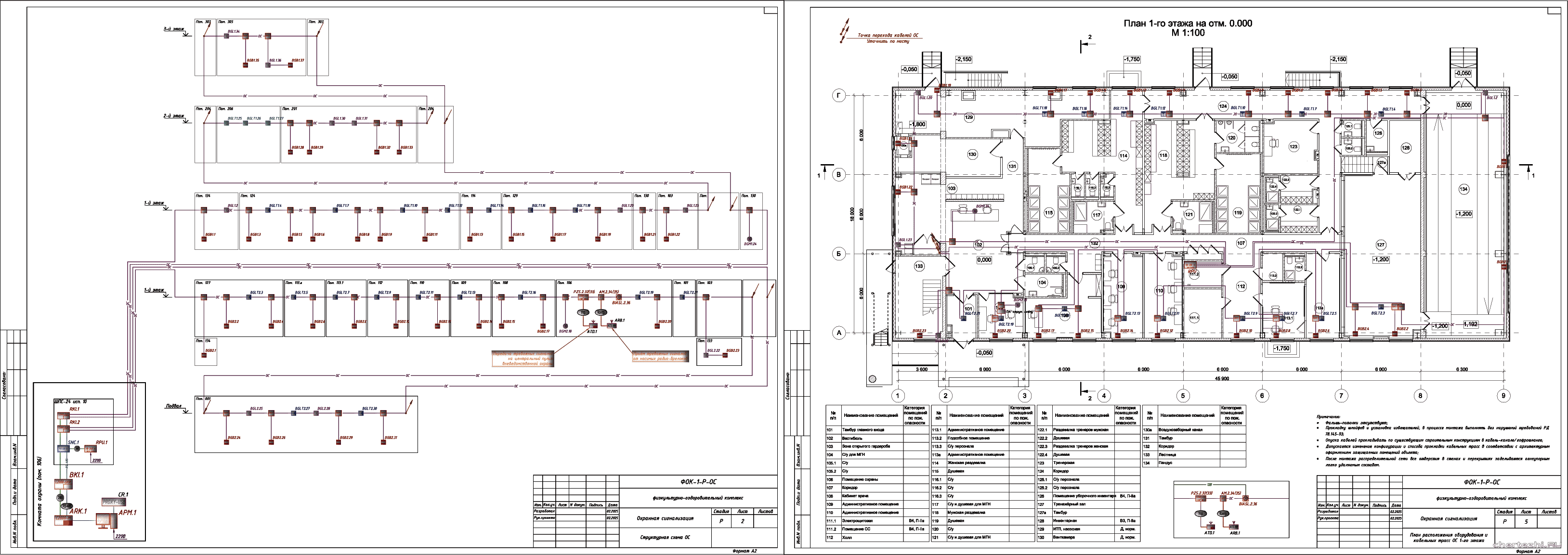 Р / Раздел "Охранная сигнализация" разработан для капитального ремонта физкультурно-оздоровительного центра на основании Отчета по результатам обследования, задания на проектирование и в соответствии с требованиями нормативных документов. / Состав: комплект чертежей + спецификация.