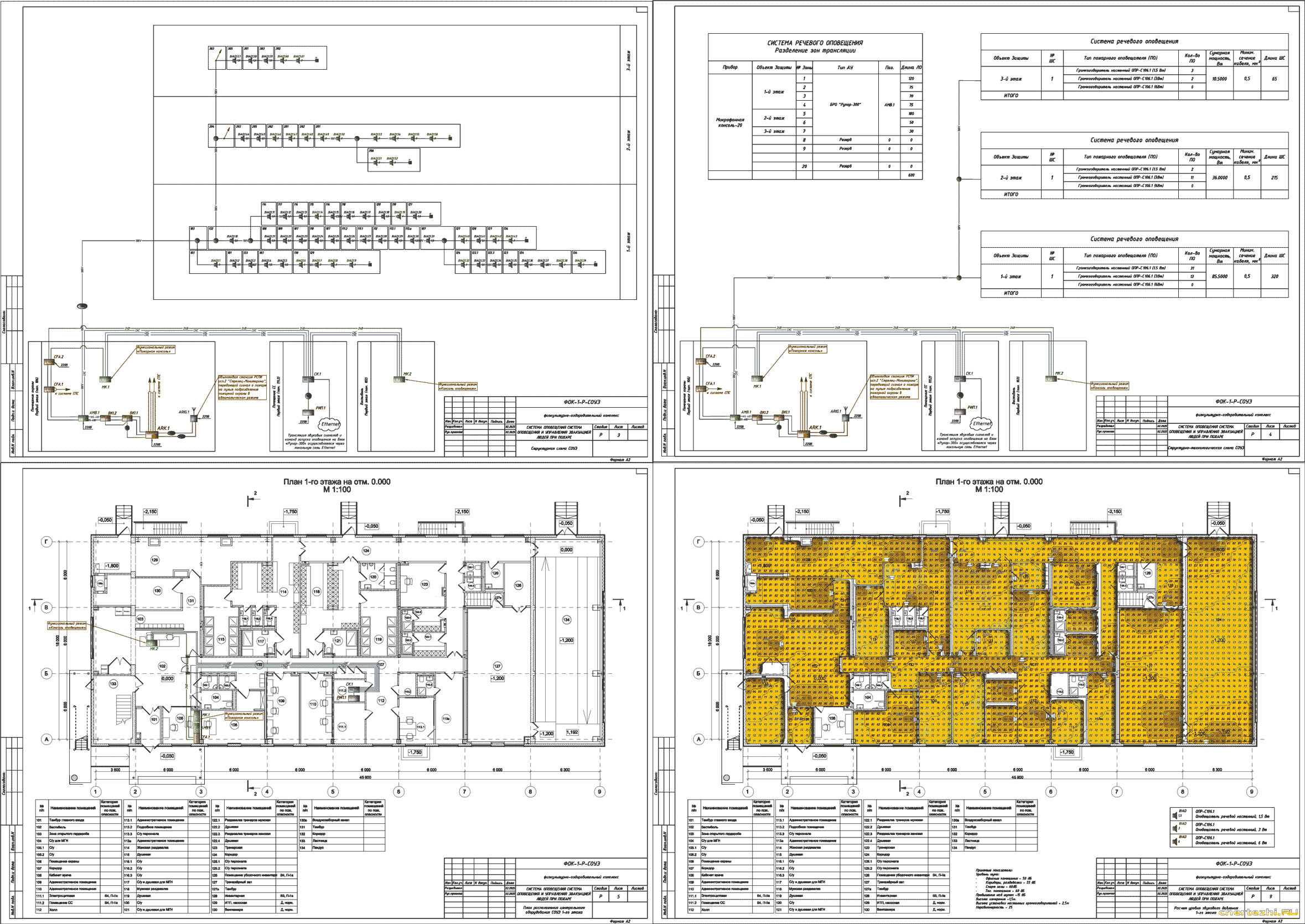 Р / Раздел "Система оповещения и управления эвакуацией людей при пожаре (СОУЭ)" разработан для капитального ремонта физкультурно-оздоровительного центра (3 этажа) на основании Отчета по результатам обследования, задания на проектирование и в соответствии с требованиями нормативных документов. Согласно Отчету (техническому заключению) по результатам обследования здания проектной документацией предусмотрена полная замена пожарной сигнализации (СПС), системы оповещения о пожаре и управления эвакуацией (СОУЭ), автоматики управления инженерными системами при пожаре (УИСП) за исключением системы, предназначенной для передачи сигнала о пожаре на пульт центрального наблюдения (ПЦН). / Состав: комплект чертежей + спецификация + расчеты.