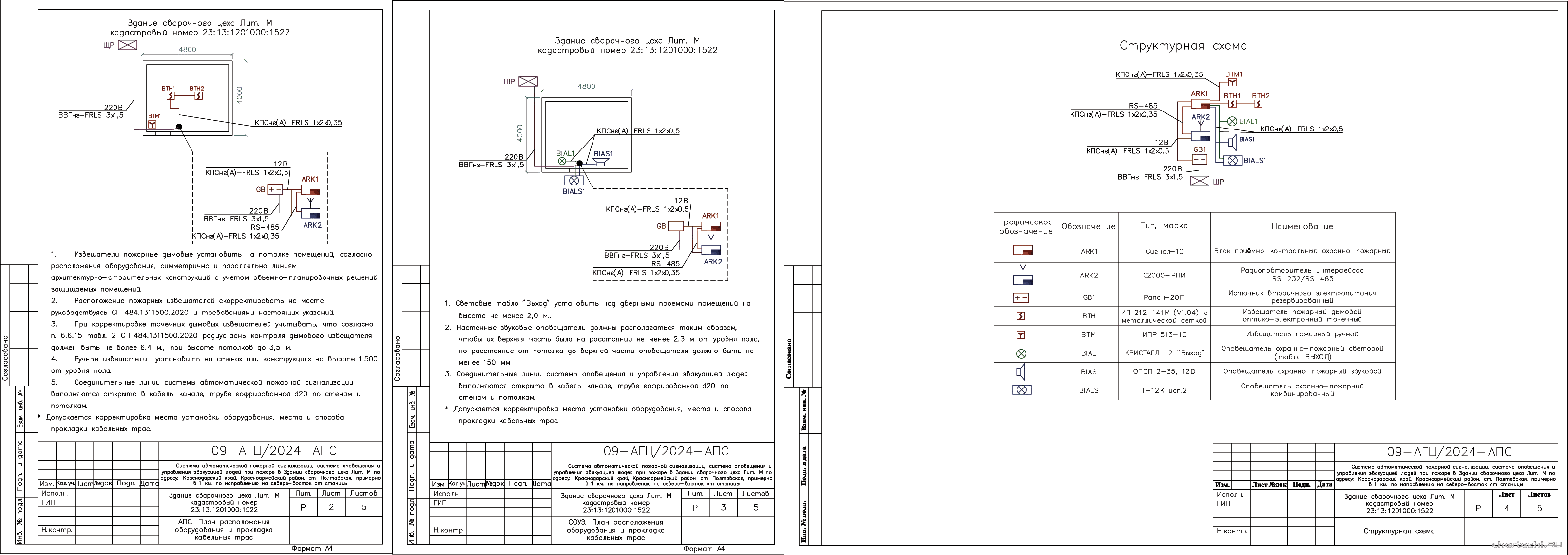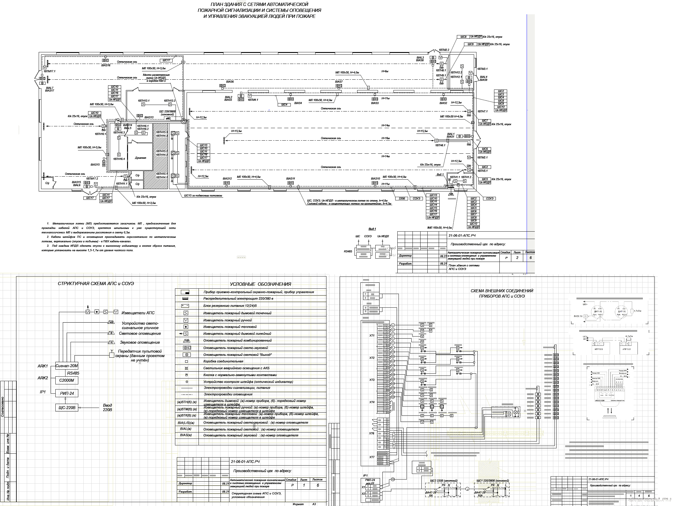 Р / Система пожарной сигнализации, система оповещения и управления эвакуацией людей при пожаре (АПС и СОУЭ) производственного здания (1 этаж). Проект на оборудовании Рубеж и LUIS LPA. / Состав: комплект чертежей + спецификация + ПЗ + Расчет резервированных источников питания, расчет звукового давления.