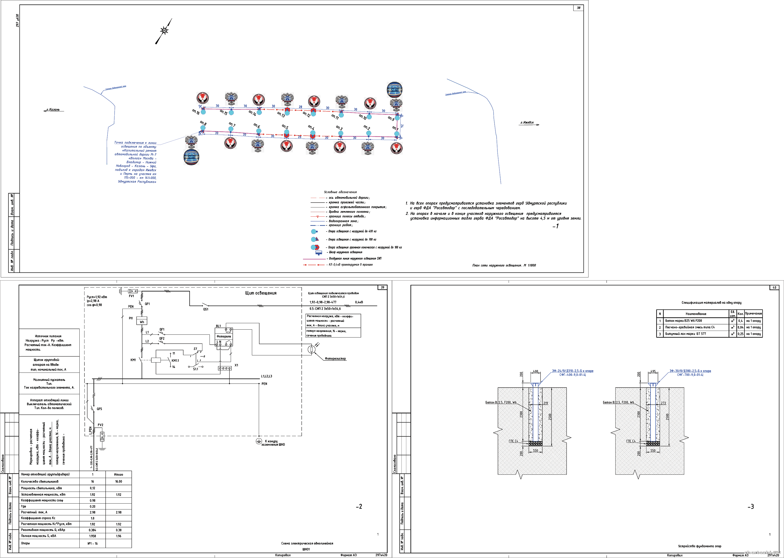 Р / Наружное освещение территории школы и спортивной площадки. Щит управления наружным освещением, осветительные опоры со светодиодными прожекторами. / Состав: комплект чертежей + спецификация.