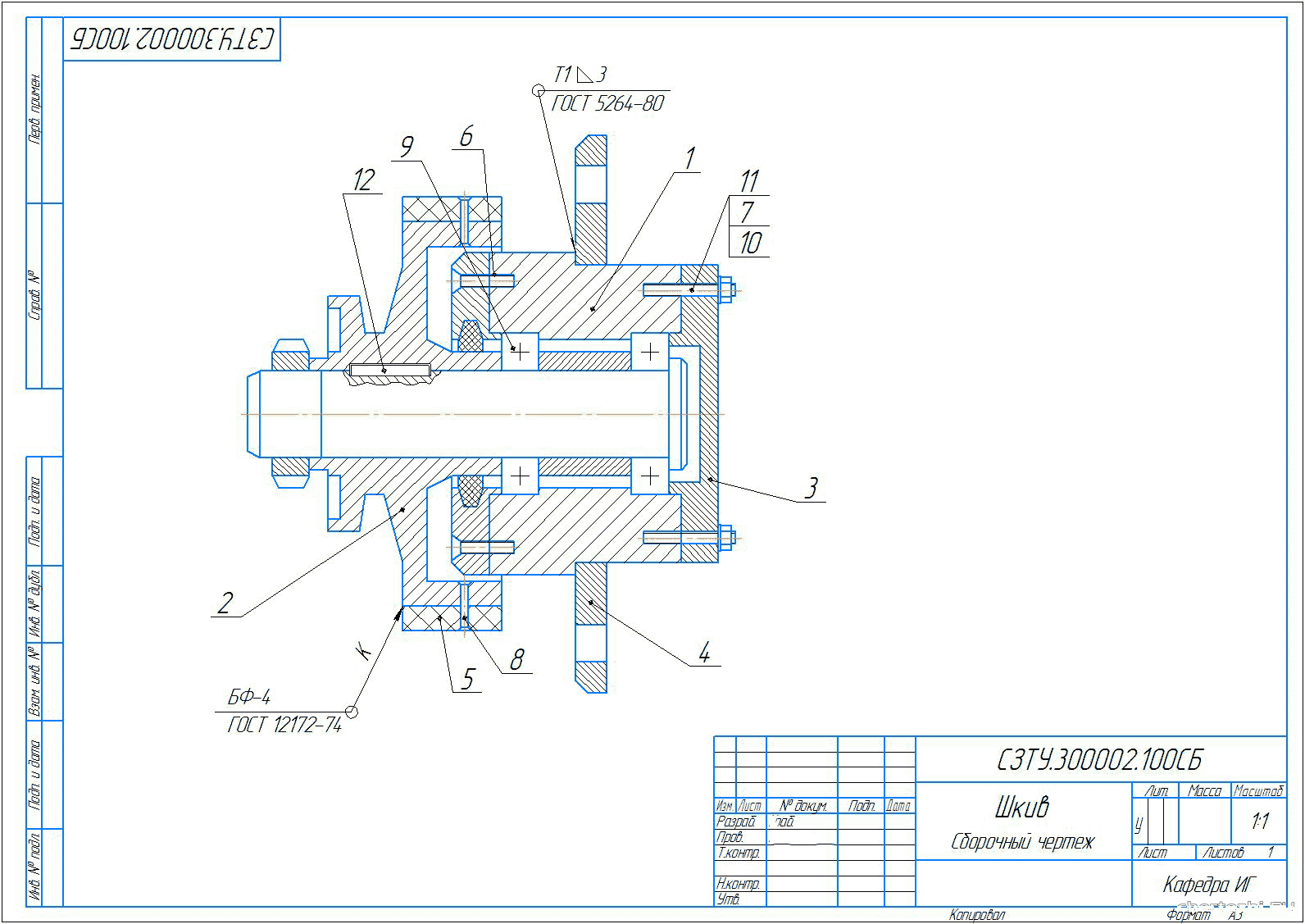 ИГАСУ / Автомобильно-дорожный факультет / Кафедра ПТСДМ и СГ / по дисциплине «Детали машин и основы конструирования» / Состав: 2 листа чертежи (редуктор, деталировка: вал, шкив) + спецификации + ПЗ.