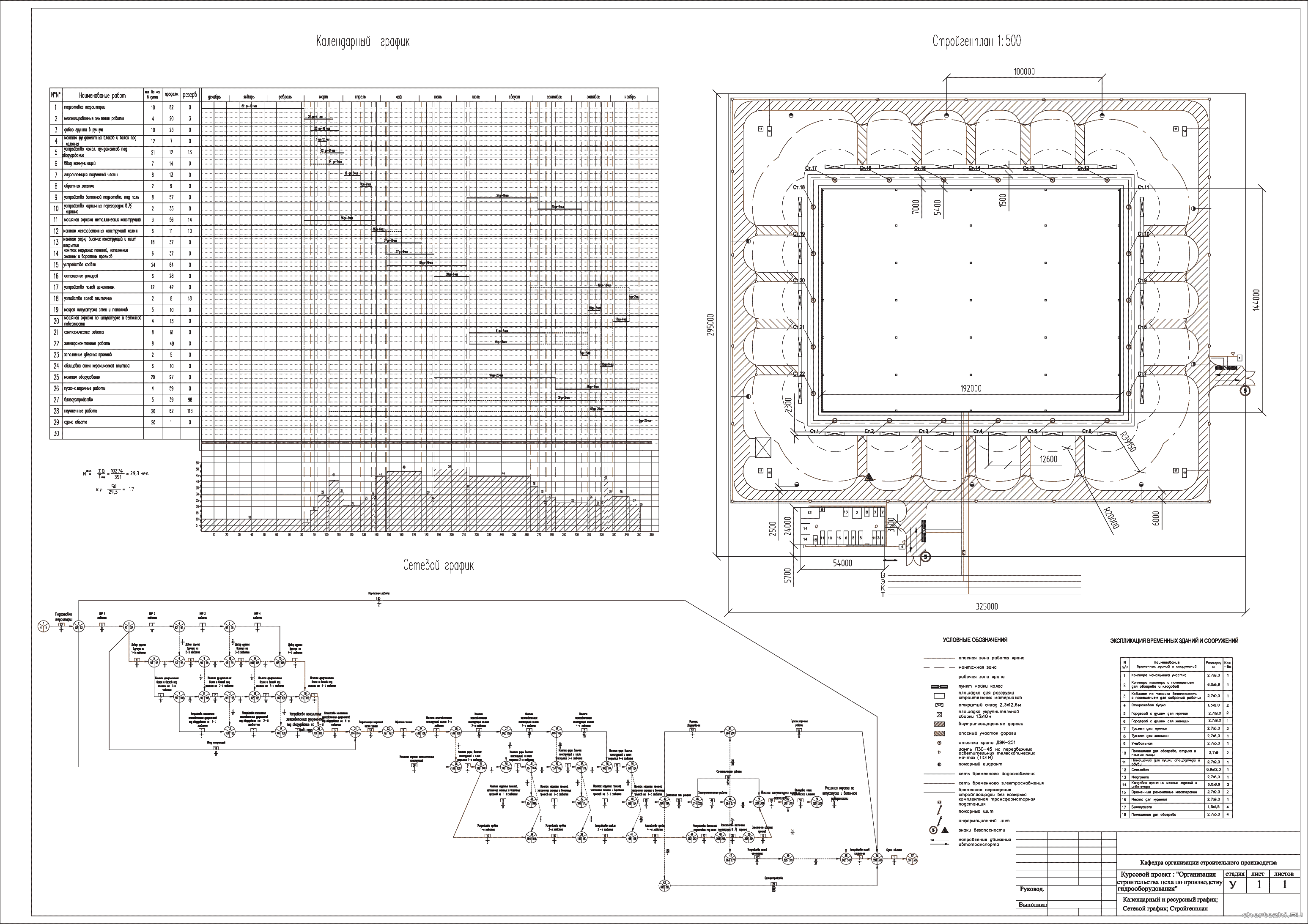 Под термином «работа» в графике подразумевается процесс, для выполнения которого необходимо затратить определённое количество времени. Событие – это конкретный результат какого-либо этапа работ. Календарно сетевой график проекта привязывает возведение строительных конструкций к определённому времени. Обычно, такие графики разбивают на дни и месяца. Сетевые графики на крупные объекты разрабатываются специализированными организациями или генподрядчиком строительства. Отдельно составляется график на подготовительный период возведения объекта. Информацию по сетевым графикам можно найти как и в составе рабочих или учебных строительных проектов, так и отдельно например как отдельная курсовая работа.