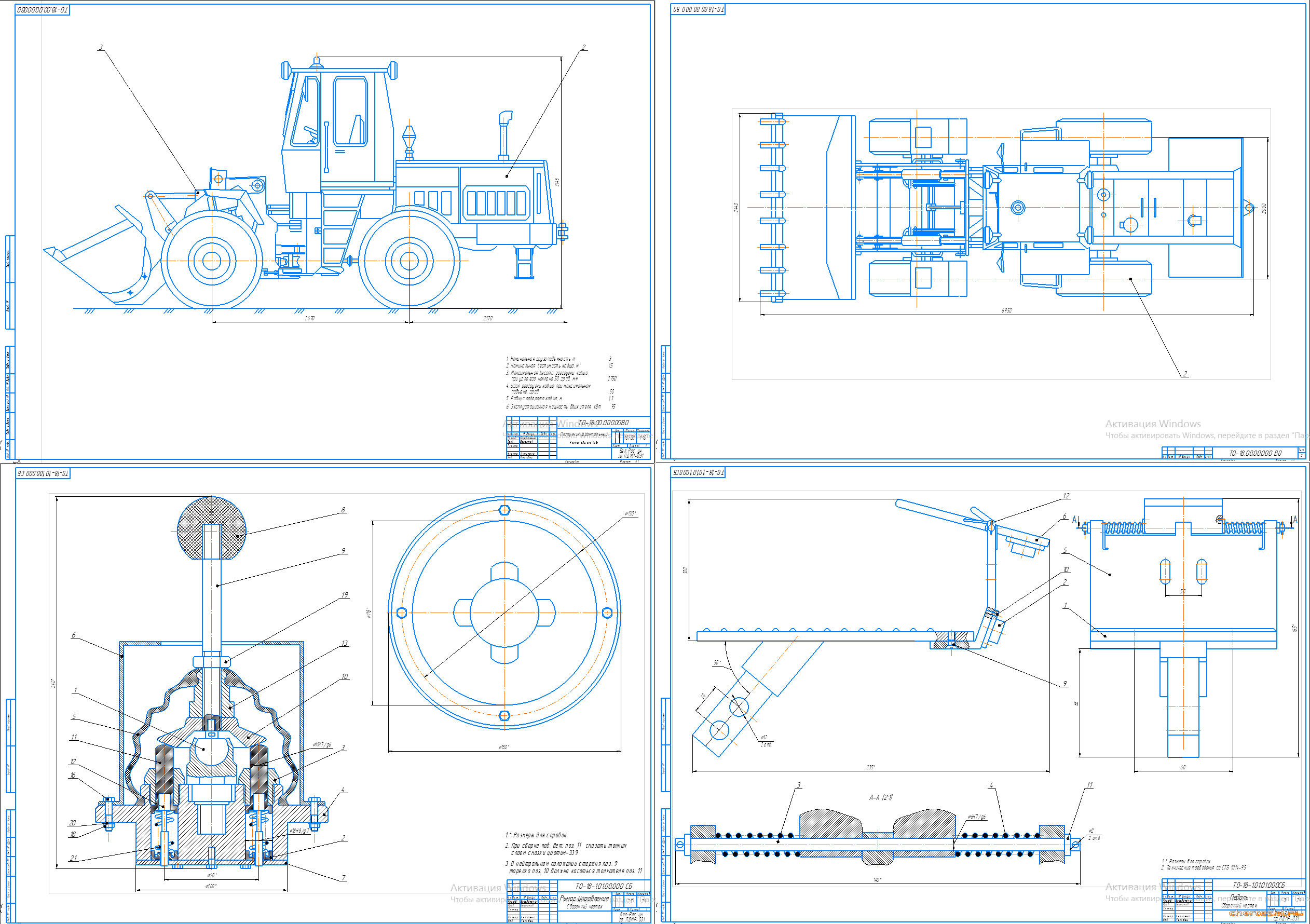 - разнообразных сборочных чертежах деталей систем управления, сцепления, ходовой и прочих частей;