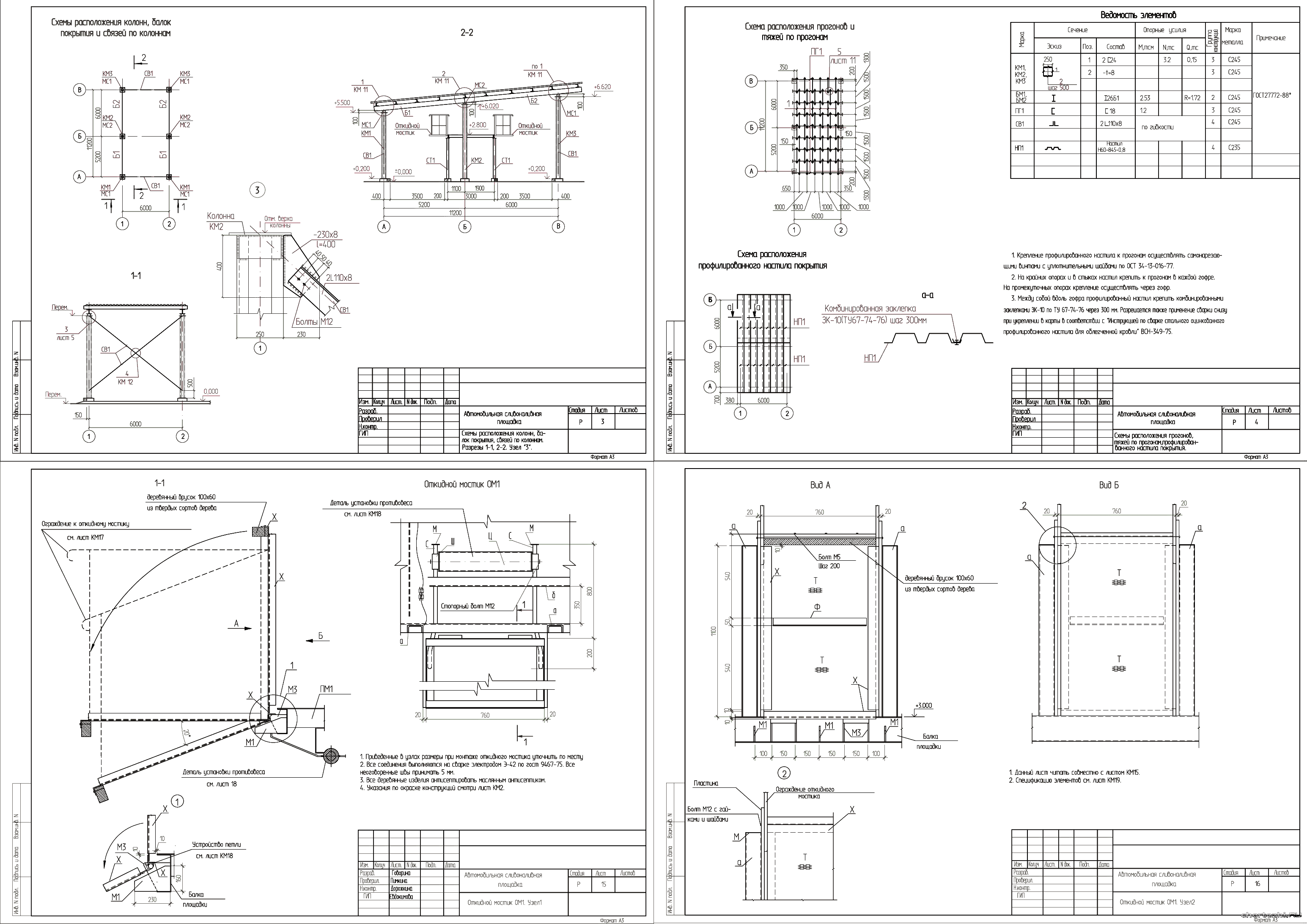 На нашем сайте найдете проекты металлоконструкций (условно бесплатно, см. правила сайта), с необходимыми чертежами, расчетами, ведомостями используемых элементов. Проекты содержат указания по защите от коррозии, огня и вандализма.