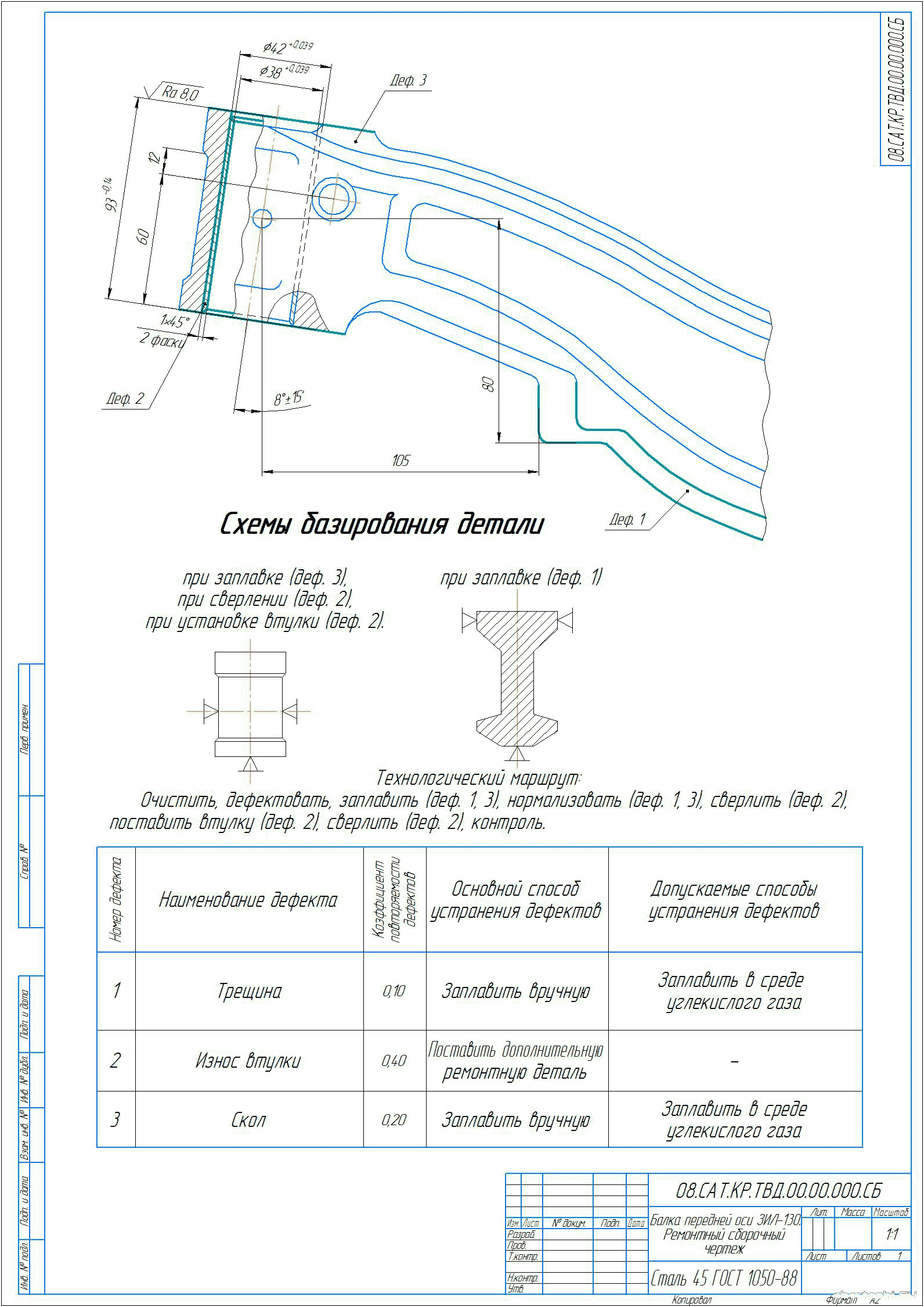 В зависимости от дефектов и степени их влияния на работоспособность, выбираются способы, с помощью которых происходит восстановление детали. Курсовая работа определяет технологический процесс реставрации.