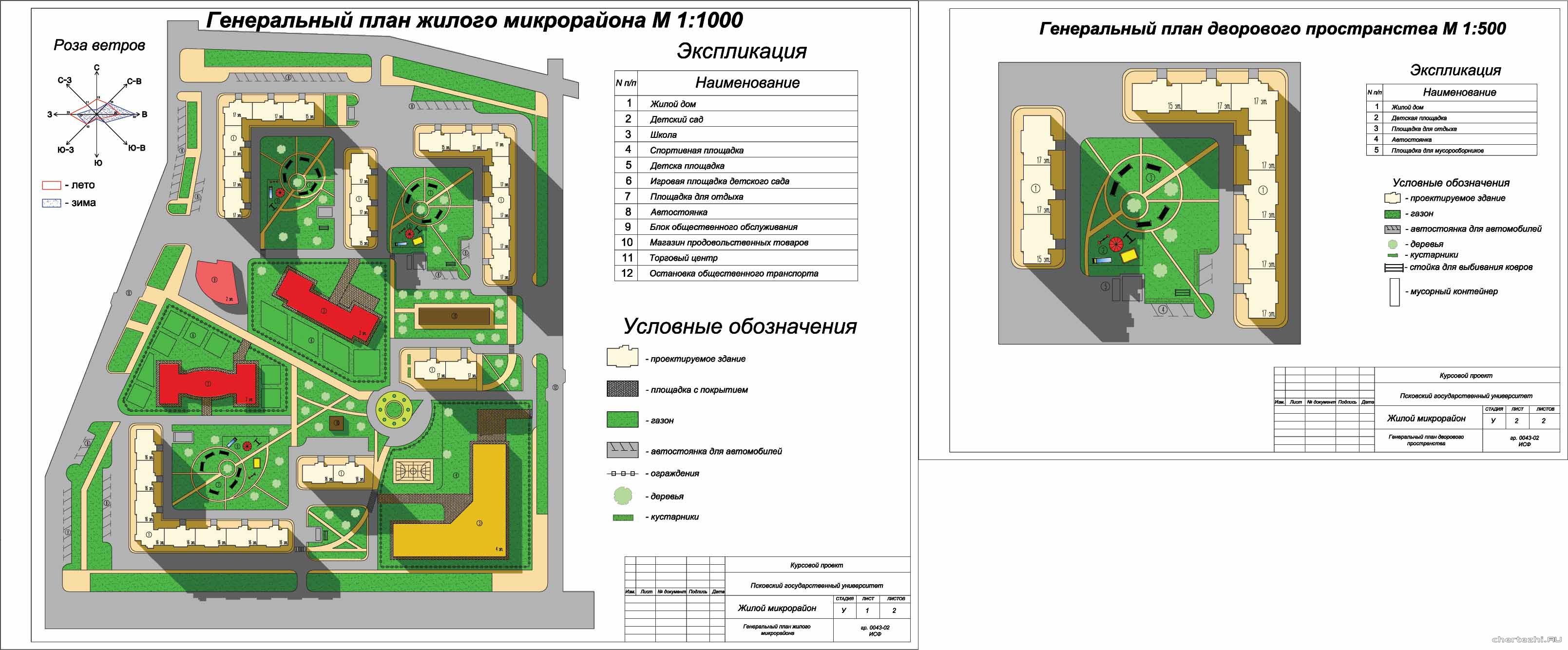 ПГУ / Территория проектируемой застройки предназначена для проживания 15 000 человек. Площадь территории составляет 54 га. Рельеф местности спокойный. Гидрогеологические условия обычные. В соответствии с заданием на проектирование схема застройки – комбинированная. Это означает, что такая схема застройки сочетает в себе элементы разных композиционных приемов. Площадь микрорайона под жилую застройку =41,67 чел*га. Площадь жилого фонда микрорайона =270000 м2. плотность жилого фонда микрорайона=6479,48 м2/га. / 2 листа чертежи, содержит чертежи микрорайона, отдельного двора + ПЗ.