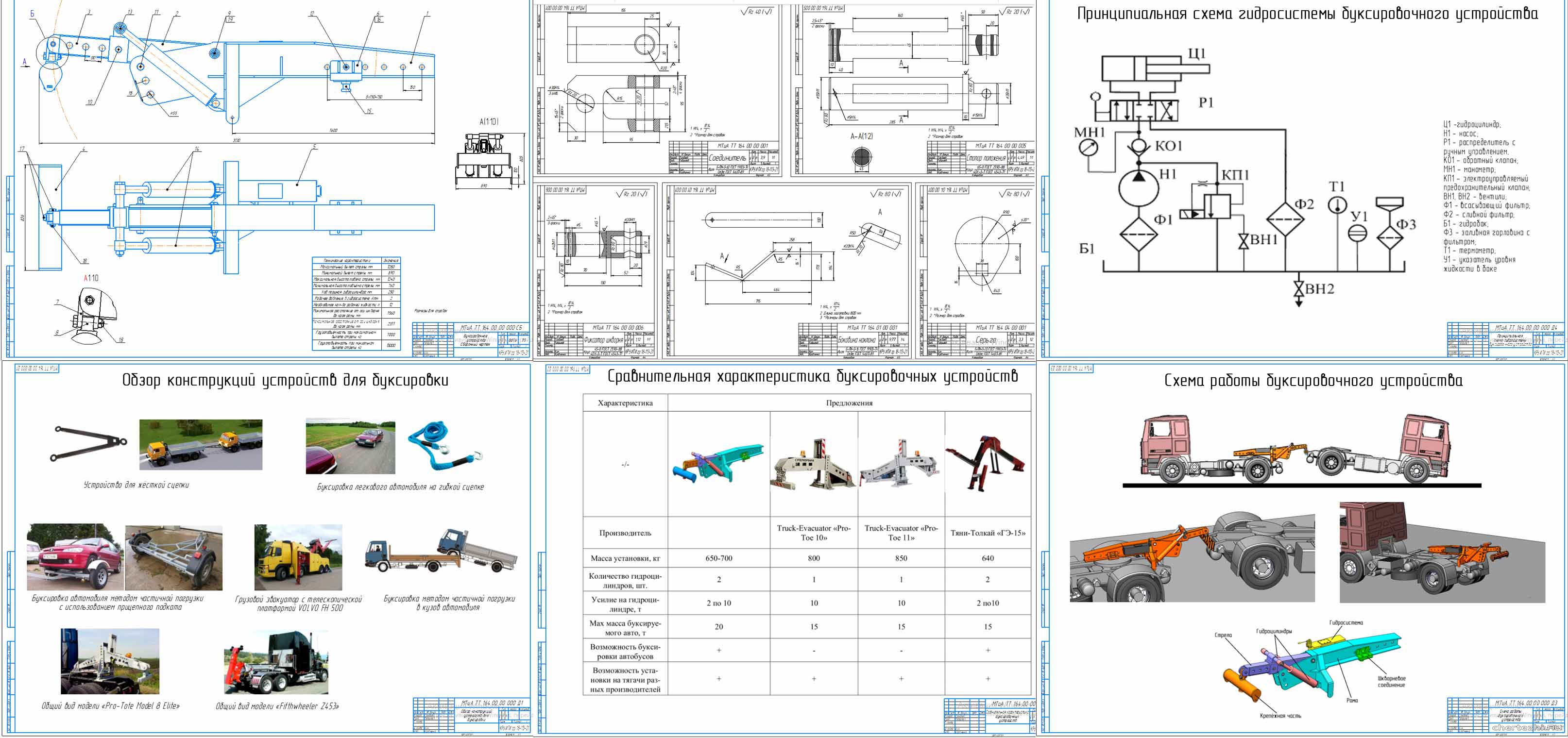 Коротко о файле:КРУ имени Ахмет Байтұрсынұлы / Кафедра машин, тракторов и автомобилей / Разработано устройство для буксировки грузовых автомобилей, расчет устройства, экономическое обоснование проекта. / Состав: 6 листов чертежи + спецификация + ПЗ (48 страниц) + доклад.