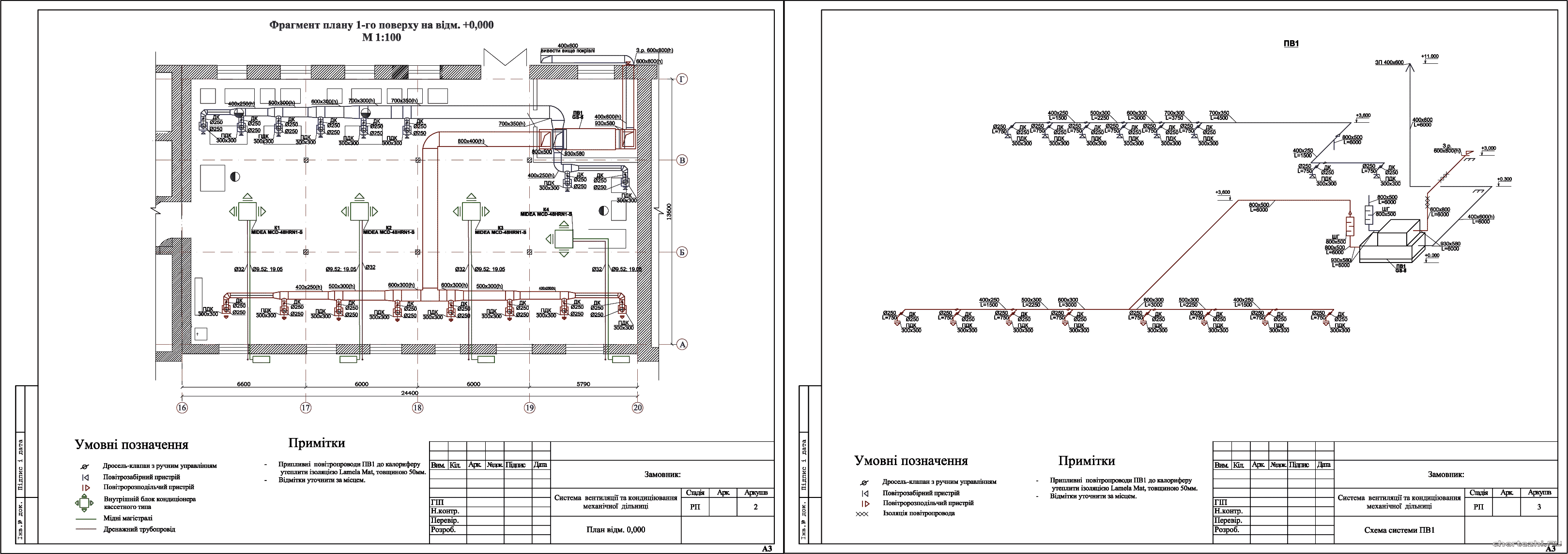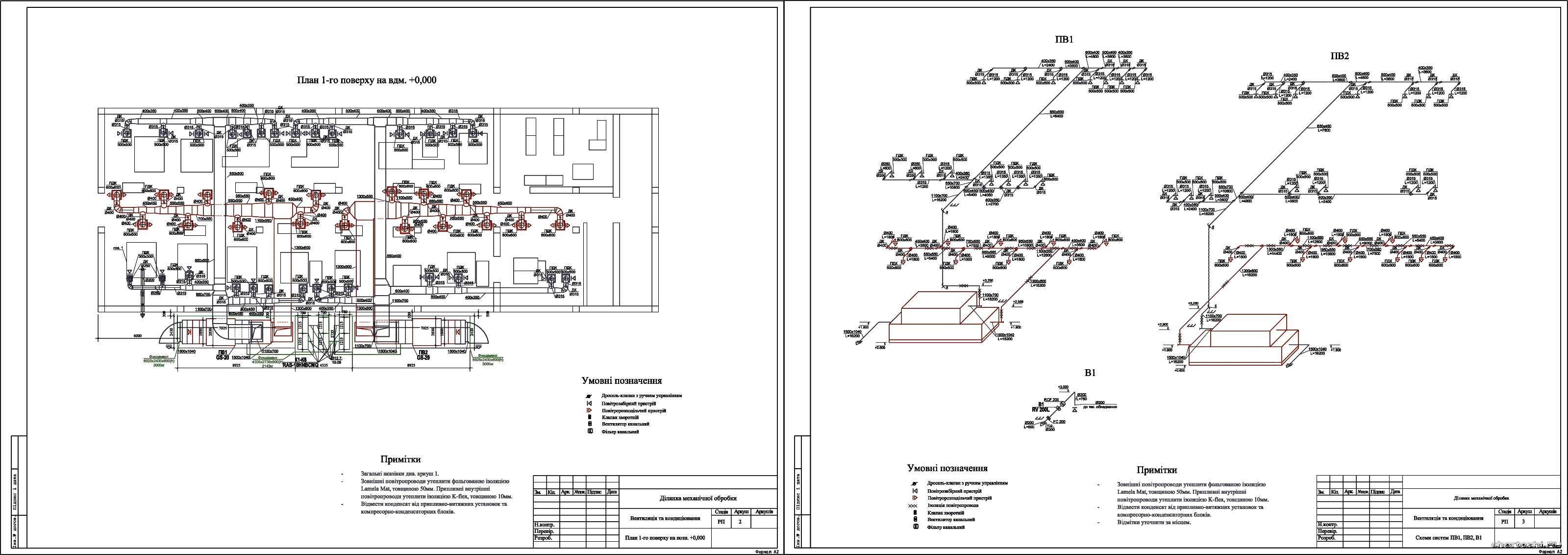 РП / Проект системи вентиляції та кондиціювання дільниці з частковим переоснащенням приміщення під стенди для випробування агрегатів на першому поверсі корпусу №202 ПАТ «Вовчанський агрегатний завод». / Склад: комплект креслень + специфікація + ПЗ.